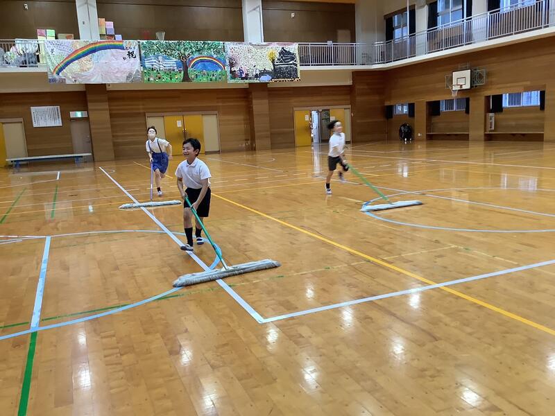 掃除の時間には、友達とモップがけの速さを競い合っていました。