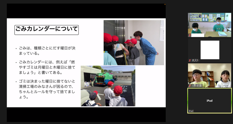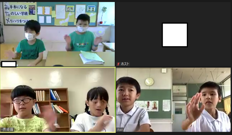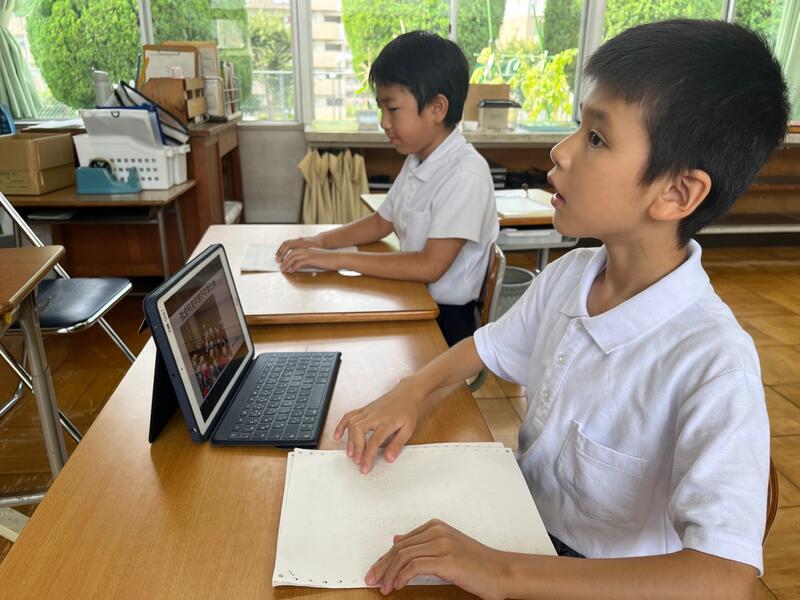 小学部一般学級では、長崎県立盲学校と宮崎県立明星視覚支援学校とオンライン交流をしています。