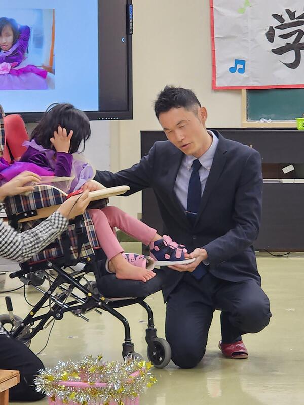 一年間の学習の成果の発表ができました。朝の会では、「はーい」のお返事、「ちょうだい」のサイン、「どうぞ(要りません)」など今年になってからできるようになったことや、新しい取組のドラえもんラジオ体操を披露しました。「シンデレラごっこ」では、椅子に座ってのお着替えや、靴履きに挑戦しました。お父さんに素敵な王子さまを熱演して貰い皆さんに拍手や、「可愛い」「上手!」の声掛けをたくさん貰いました。達成感を充分に感じることができました。