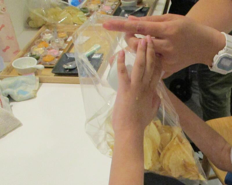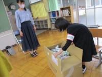 集まった食品を触って確かめながら、回収箱に入れました。