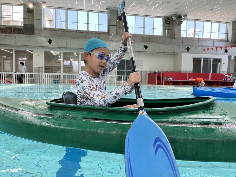 ○カヌー体験 最初は怖がっていましたが、オールの操作も練習して上手になりました!