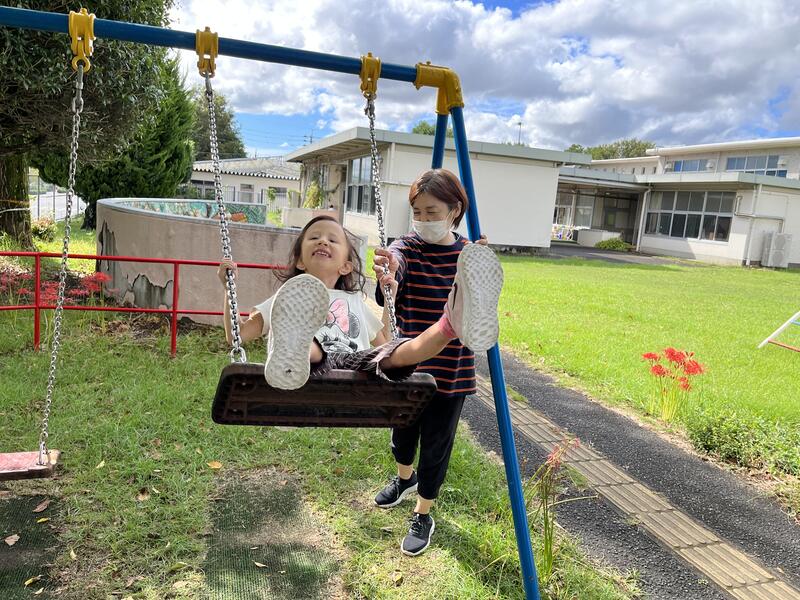 外は涼しい風が吹いていて気持ちが良く、ブランコや散歩を毎日楽しんでいます。今週は、お友達や先生たちと遊ぶことが多かったです。お友達の声がして賑やかで楽しかったです。また、一緒に遊んでね!