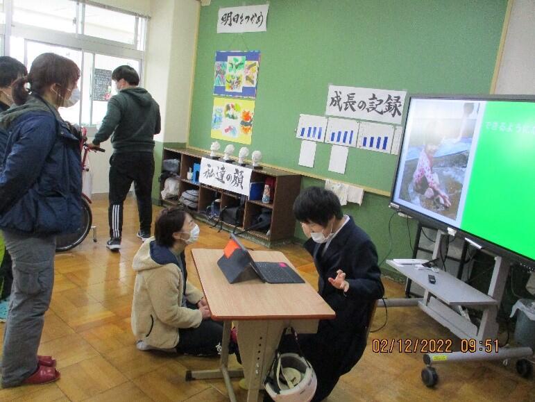 作品展当日は、生徒はそれぞれのブースの作品紹介を担当し、来場した職員に積極的に関わり、作品の説明をすることができました。作品を通してこれまで取り組んできた成果を発表することができ、とても達成感を感じている様子でした。
