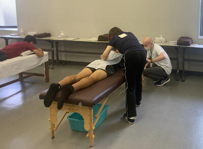 普段、スポーツをしている選手の治療を行うことはとても貴重な機会であり、生徒たちは丁寧に症状を聞きながら熱心に取り組んでいました。