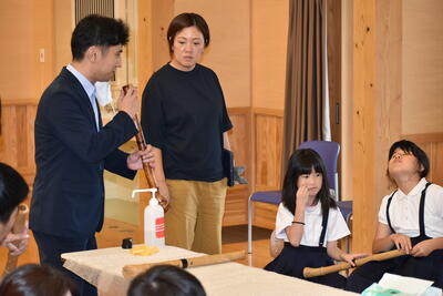 その後は、3グループに分かれて、実際に尺八演奏を体験しました。