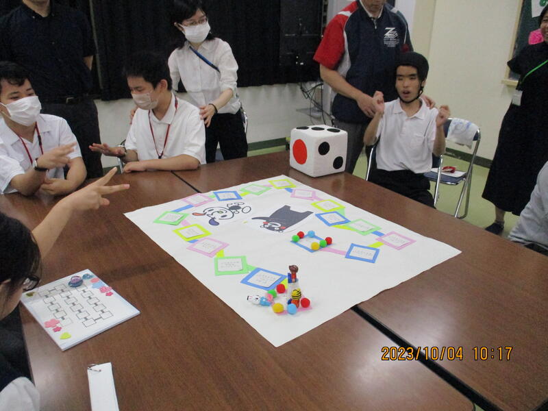 対面交流では、1 自己紹介、2 すごろくトーク、3 フリートークを行いました。すごろくトークでは、「学校で好きな活動は何ですか?」や「好きな給食は何ですか?」というお題に答え、とても盛り上がりました。フリートークでは、好きな歌手やゲームの話をして共通点を見付け、心の距離がぐっと近付きました。