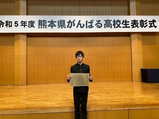 11月16日木曜日に高等部普通科3年のSさんが「令和5年度熊本県がんばる高校生表彰式」に参加しました。