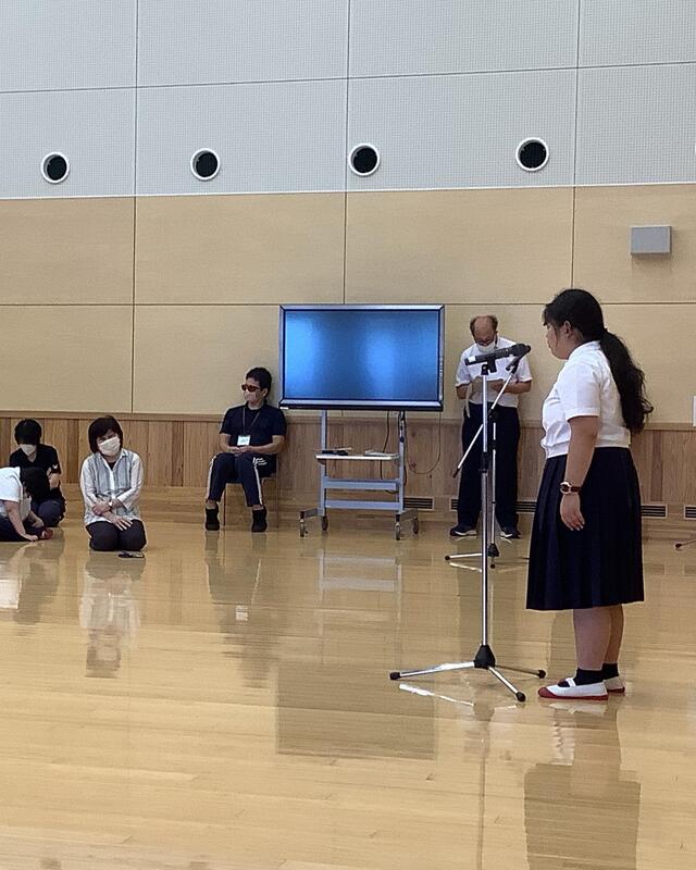 夏休みも練習を重ね、大会前日には、小中高等部みんなの前で英語スピーチを披露。大きな拍手で応援を受けました。