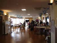また、地域の人達とより積極的に交流を行うことを目的に、近年、ケア・ハピネスのすぐ隣に『かじおハピロバ』という広場ができ、クリスマス、成人、還暦のお祝い等、様々なイベントを催しておられるとのことでした。施設の利用者さんと地域の人達が楽しく交流されておられる写真を見せていただきました。
