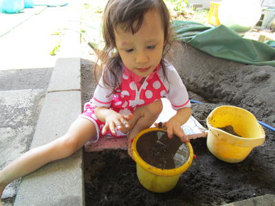 梅雨ですが、週の前半は天気に恵まれすぎるほど恵まれ、たっぷりの日差しの中で水遊びや水を使った遊びを行いました。