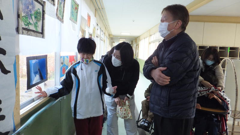 説明会後は、小学部の後輩から「私は、みんなの作品を触れて嬉しかったです。私もいつか作品を展示して、みなさんに触ってもらいたいです。」等の感想をもらい、先生方からは、「説明会で、嬉しそうに自分の作品の紹介をする皆さんの姿は、『笑顔いっぱいニコニコわくわく』のテーマそのものでした。素敵な作品をありがとうございました。」「みなさんの説明からは、寒さに負けないパワーが伝わってきて、私も元気になれました!!」等の感想が寄せられました。普通科の生徒達も、「また、頑張って作品を作りたいです!!」と、意気込む様子が見られ、大盛況の展示会を終えることができました。