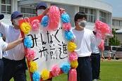 5月16日(月)に延期された高等部体育祭でしたが、快晴の中に実施することができました。「徒競走」では、校長先生がゴールテープを持ち、ゴールで迎えてくれました。「ラダーゲッター」は、1位青団(2年生)、2位赤団(3年生)、3位白団(1年生)でした。全員ダンス「マツケンサンバⅡ」では、ポンポンを手に、力いっぱい「オレ!」のかけ声をかけ、みんな笑顔で踊りました。今年の高等部体育祭のスローガンは「みんなで一歩前進」でした。このスローガンのもと、体育祭を盛り上げることができました。一人一人が自分らしく、精一杯、笑顔で体育祭に取り組むことができました。