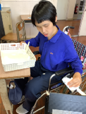 高等部では、作業学習の授業で「総合サービス班」と「窯業班」の二つの作業班に分かれて活動しています。繰り返し行うことで、作業に見通しを持って取り組むことができています。今後は、ゆうし祭に向けての活動も行う予定です。それぞれの目標に向かって精一杯取り組んでほしいと思います。
