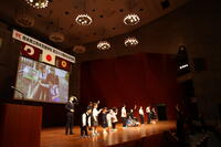 本校の創立50周年記念式典が、11月1日水曜日に熊本県立劇場を貸し切って挙行されました。式典に先立ちオープニングでは、学校の様子や歴史をスライドで振り返りました。そのスライドに合わせて、練習してきた「ビリーブ」の歌と手話を児童生徒全員で披露しました。代表の児童生徒はステージ上でのびのびと、客席の児童生徒はその場に立って精一杯歌と手話を発表することができました。会場が1つになった感動的な場面でした。