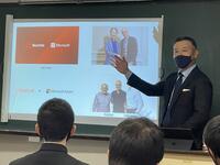 講師にお迎えしたのは1991年に本校を卒業され現在、日本Microsoft株式会社エンタープライズパートナー営業統括本部業務執行役員・統括本部長を務められている野中智史氏です。「ほとんどの日本人が知らないマイクロソフトの全貌 ―グローバル企業で求められる人材とは―」というテーマでお話をいただきました。IT企業で働くことはどういうことかや、マイクロソフトは「地球上全ての存在が多くのことを達成できるように」というミッションを持っていること等の説明がありました。多くの生徒が参加し、質問も会終了後まで続きました。