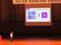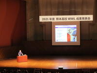 7月14日(水)の午後、熊本県立劇場でWWL(ワールド・ワイド・ラーニング)成果発表会が開催されました。新型コロナウイルス感染症対策として、1・2年生は熊本県立劇場で、3年生はオンラインで参加しました。まず、研究主任の早野先生からWWL事業の説明があり、その後、生徒主体で以下の内容について発表がありました。