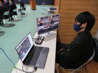 新入生と2年生は体育館で対面し、3年生は各教室からオンラインで参加しました。