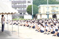 7月12日(火)に1年生のスポーツレクリエーションがありました。競技時間は9時~11時と短時間の開催でしたが、1年生にとっては楽しいひとときでした。 競技内容は以下のとおりでした。 男子:ソフトボールとバレーボール / 女子:ドッジボール