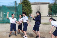 3月22日(水)に1年生のクラスマッチがありました。初めにジェスチャーゲームでウォーミングアップをした後、各競技(男子:ハンドボールとサッカー、女子:キックベースとバレーボール)に分かれて試合をしました。WBCの決勝と同様に、熱い戦いが繰り広げられました。
