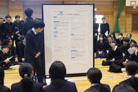 3月13日(水)の午後に熊本高校の体育館で総合的な探究の時間の研究成果発表会が行われました。