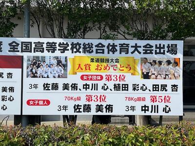 そこで本校柔道部が女子団体3位、女子個人戦では70kg級で佐藤(3年)が3位、78kg超級で中川(3年)が5位という結果でした。