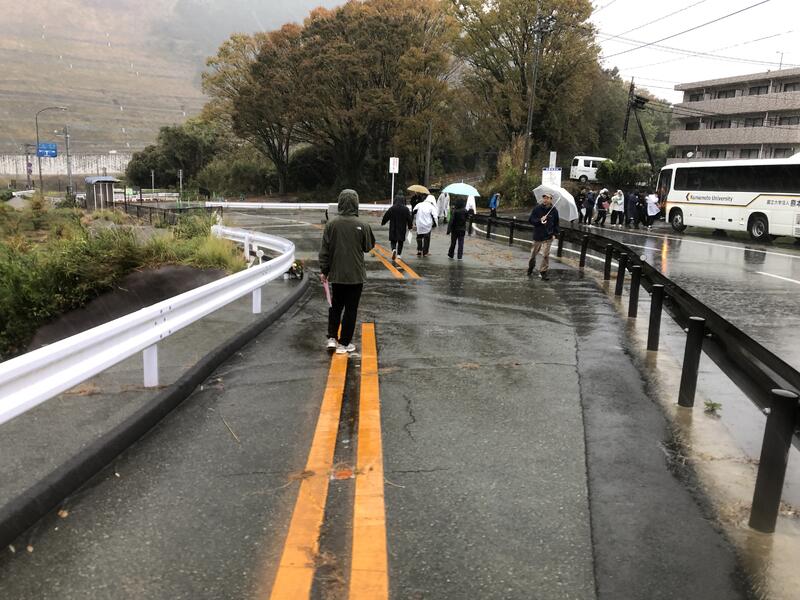 11月26日(火)、サイエンス情報科1年生を対象に行われました。熊本大学くまもと水循環・減災研究教育センターの先生方2名を講師に迎え、熊本地震の原因となった布田川断層の観察や、震災遺構の見学をして回りました。この日は雨天であり、阿蘇地域の地形の成り立ちについて学ぶ機会はありませんでしたが、熊本地震における災害が甚大であったことを知ることができました。