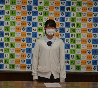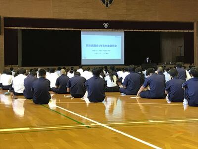 また、午後からは交通安全集会(校内オンライン配信)を行い、熊本南警察署の方からの講話や、全校生徒による交通安全宣言を行いました。