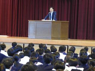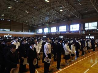 1月12日(金)高校3年生は、家庭学習期間が始まることを受け、諸注意が行われました。終了後、明日から始まる大学入試共通テストに向け、激励会が行われ、校長先生から激励をしていただきました。