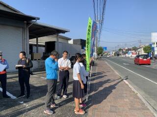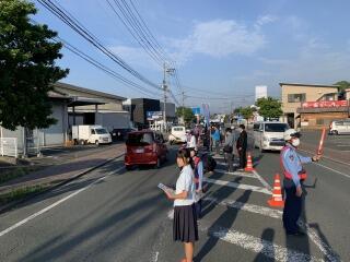 今年度も、熊本南警察署の方々と共に、事故現場である田崎市場前や学校周辺で交通指導を行いました。