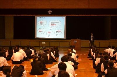 7月6日(木)6,7限目、「熊本西高の皆さんと一緒に考えたい〜自分も友達も大切にするインターネットの使い方〜」について帯山中学校教頭の田中慎一朗先生に講演していただきました。
