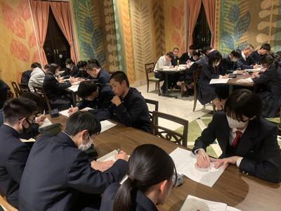 1月12日(金)高校3年生は、家庭学習期間が始まることを受け、諸注意が行われました。終了後、明日から始まる大学入試共通テストに向け、激励会が行われ、校長先生から激励をしていただきました。