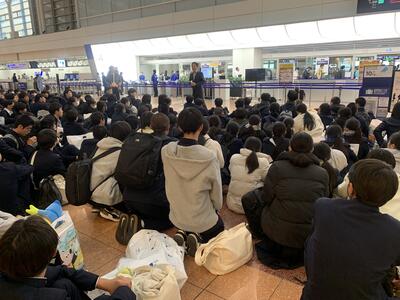 12月12日(火)1年スポーツコースの修学旅行が始まりました。全員遅刻・欠席することなく集合できています。