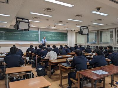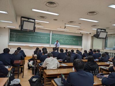 12月22日(金)2年特進クラス(2クラス)に対して、九州ルーテル学院大学の島内教授、アクストン准教授に来校していただき、出前授業をしていただきました。