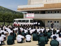 先生方から、本校での最後の温かいお言葉をいただき、生徒諸君や見送りのために集まった卒業生が熱心に耳を傾けていました。