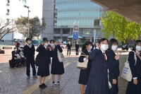 復路では、遅れた1年2組の女子の班と一緒に歩きました。普段、長い距離を歩かない一般の生徒にとって、約15㎞の道のりは大きな負担となるようです。早くゴールした生徒達は制服に着替え、自転車で帰宅する姿が見られ、焦りも出てきます。しかし、一人ではありません。女子7人で朗らかに声を掛け合い、一歩一歩、ゴール(学校)を目指します。ひたすら歩く、みんなで歩く。ただそれだけの鍛錬行事ですが、西高生としての一体感が強まる得がたい時間です。