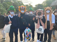 体育コースの生徒は7時45分には出て、各ポイントに立ち、交通安全やコースの誘導をしてくれます。一般生徒は8時半から2学年、1学年、3学年の順でスタートしました。それぞれ4~8人のグループ別に歩くことになります。担任の先生はクラスの生徒たちと共に歩きます。私も昨年に続き参加しました。昨年は一番最後からゆっくりと歩きましたが、今年は最初にスタートした2学年の真ん中あたりで歩き始めました。