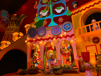 絶叫系アトラクションは避け、あまり並ばずに体験できるものを選び、クラスの生徒数人と、「イッツ・ア・スモールワールド」というアトラクションに乗りました。ボートに乗って、各国の民族衣装の子どもたち(人形)が歌い、踊る様子を見ながら世界を周遊するものです。「世界中どこだって 笑いあり涙あり みんなそれぞれ助け合う 小さな世界」と子供たちの歌が響く中の世界一周はとても穏やかな気持ちとなり、幸福感を覚えました。