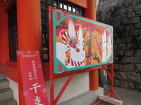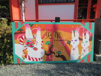 小春日和の陽射しのもと、12月26日(月)、西高美術部が制作した大型絵馬が高橋稲荷神社に奉納され、社殿入口の正門に飾り付けられました。新年の干支は癸卯(みずのとう)であり、朝日の曙光を背景に兎の親子や縁起ものの松を描いた作品です。縦90㎝、横180㎝の木板上、色彩豊かな画面に仕上がっています。高橋稲荷神社に初詣に訪れる方を温かく迎える絵馬となりそうです。