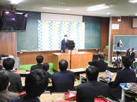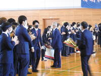 前日の式予行の場で、学年主任の錦戸教諭が「これまでやかましいことを言ってきたが、もうやかましいことを言えなくなる」と淋しい心境を伝え、「どこに行くかよりも、行った先でどれだけ頑張れるかの方が遙かに大切だ」と、それぞれの進路へ向かう生徒達を励まされました。