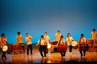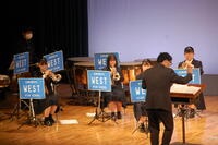 第2部は、西高太鼓部のステージとなりました。同部の卒業生の先輩たち10人が登場し、横笛、鐘も交えた賑やかな演奏となり、変化をつけた切れ目ないリズムで会場を盛り上げました。最後は現役部員2人による、小・中・大の3種の太鼓を打ち分ける演奏で締めくくりました。