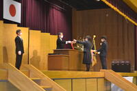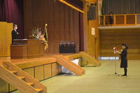 前日の式予行の場で、学年主任の錦戸教諭が「これまでやかましいことを言ってきたが、もうやかましいことを言えなくなる」と淋しい心境を伝え、「どこに行くかよりも、行った先でどれだけ頑張れるかの方が遙かに大切だ」と、それぞれの進路へ向かう生徒達を励まされました。