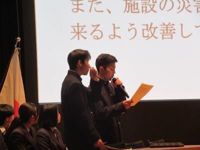 本校から探究活動の「地域3班」が代表として2名が発表に臨みました。