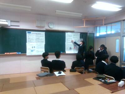【1年総探】 ミニ探究成果発表会 投稿日時 : 02/03 学校サイト管理者 期日:令和8年2月3日(火) 5~6限 目的①:ミニ探究活動の取組内容や学んだこと、気付いたことなどを発表したり聞いたりすることで、取組の振り返りをする。 目的②:他のグループの取組を共有することで視野を広げる。 {{options.likeCount}} {{options.likeCount}}