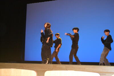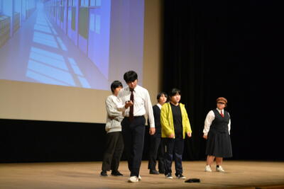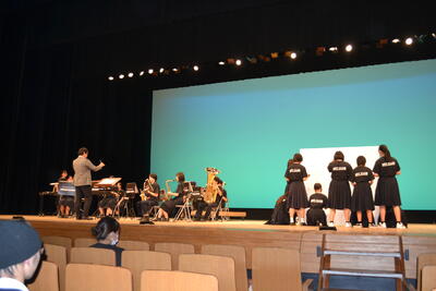 西高太鼓に始まり、音美パフォーマンス、1年生、2年生、交通委員会、保健委員会、放送部、演劇部の発表の後、有志によるミニパフォーマンスショー、最後は吹奏楽部の発表が行われました。