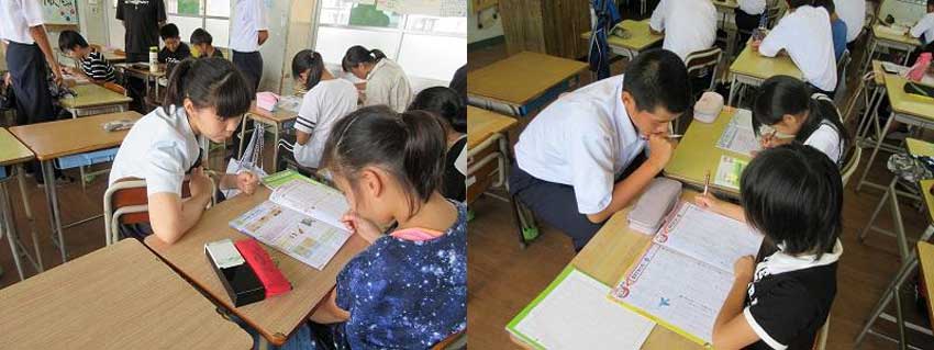 7月23日(月)、24日(水)、25日(木)の3日間、熊本市立城山小学校において、ふれあい教室が行われました。高校から3日間で約170名の生徒が参加し、小学校4年生から6年生までの小学生に熱心に夏休みの宿題などを教えていました。また、休み時間には、外でサッカーやドッヂボールをするなど、小学生と一緒に遊び、精一杯楽しんでいました。