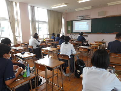 私たちが生きる社会の事実と、必要となる「選択」について客観的資料をもとにお話くださり、生徒たちも気持ちが引き締まった様子でした。