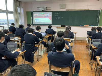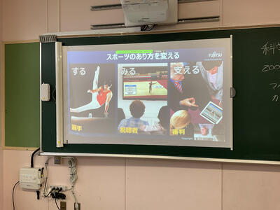 12月17日(土)1年生サイエンス情報科の生徒を対象に、富士通 スポーツビジネス統括部 阿部様による遠隔授業が行われました。