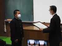 12月20日(月)令和3年度2学期表彰式・終業式が行われ各クラスにZoom配信しました。