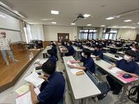地域の中学生の学習支援、特に高校入試問題の解き方について授業を行いました。西高の教室で、西高の数学教師による体験授業に、熊本市内から5中学校、市外から2中学校の計7中学校から参加者がありました。担当した山本先生は、今日のために一生懸命準備をしてのぞみました。中学生の方も、先生の熱心に耳を傾け、高校入試に向けて何かきっかけをつかもうと大変意欲的でした。保護者の方々には、校内の文化発表展示物を見てもらうなど、本校について理解を深めてもらいました。今後、参加した中学生のみなさんの受験勉強が順調に進んで、進路が実現することを心から願います。
