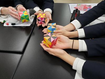 各自学食で昼食を摂り、午後は藤田先生の正多面体の講義を受けました。